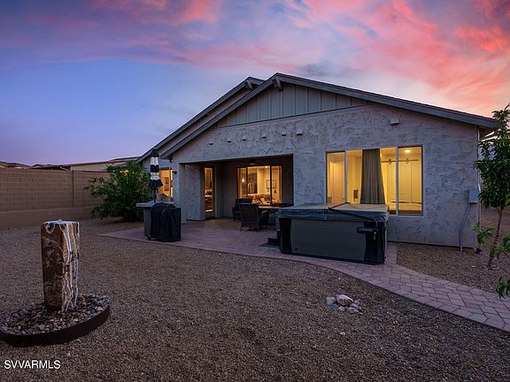 The popular Daybreak floor plan (3bd + den) with all of the bells and whistles!! Premium lot, extended paver patio, outdoor kitchen, custom built natural gas fire pit, hot tub, raised bed garden, peach, pear, plum, pomegranate and apple trees, paid for solar, indoor air plus certified, HERS rating 30, green energy built. The interior is a showstopper as well with all of the high end fixtures, custom lighting and tile work, upgraded cabinetry and countertops, bonus sink in the laundry room, custom barn doors and so much more!! Enjoy the community park, nearby shops and attractions of historic Clarkdale, just minutes to Old Town Cottonwood nightlife and a scenic 25 minute drive to Sedona. The good life awaits at 463 Tin Horn Lane.