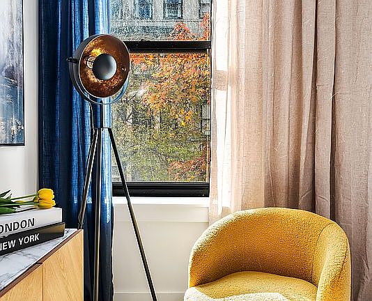 On this tree-lined block, the stately lobby welcomes you with brass, marble, and a custom mural inspired by the neighborhood’s natural landscapes. The furnished rooftop terrace offers sweeping views of treetops, turrets, and Hudson River sunsets—ideal for morning coffee or open-air evenings. Additional amenities include private storage and a virtual doorman.