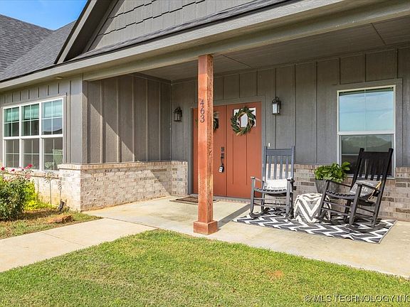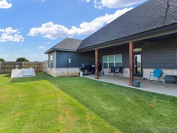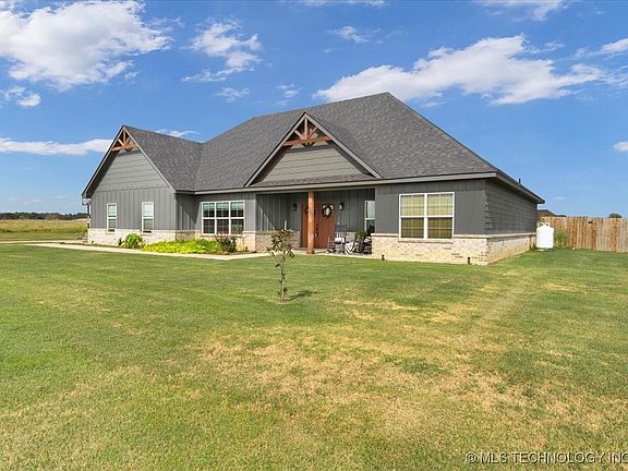 A brilliant balance of classic rustic farmhouse elements with sleek and simple twist of modern living. This home is a wonderful place to start a new chapter. Welcome guests from the impressive covered porch and relax into your leisurely evenings in the shade of the covered porch. The open family, dining and kitchen spaces shine with natural light from the walls of windows. A center island creates a natural gathering place for family breakfasts while allowing an expansive view from the elegant kitchen at the heart of this home. Escape to the effortless luxury of the Owner's Retreat, complete with a large walk-in closet and a serene en suite bathroom. Also featured, a walk-in laundry room with built-in cabinets, sink, and space for a full-sized washer and dryer. Split bedroom with 2 bedrooms and well appointed guest bath. Nice backyard with a covered patio perfect for outdoor living & entertaining. 20X30 shop with cement flooring for additional storage and a wood fence surrounding it for maximum privacy.