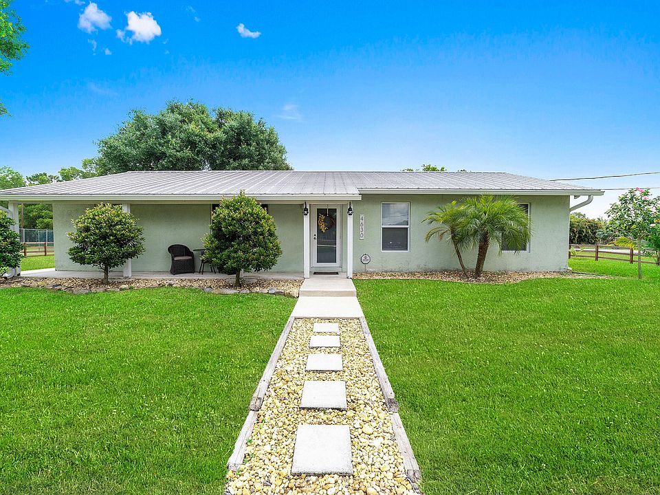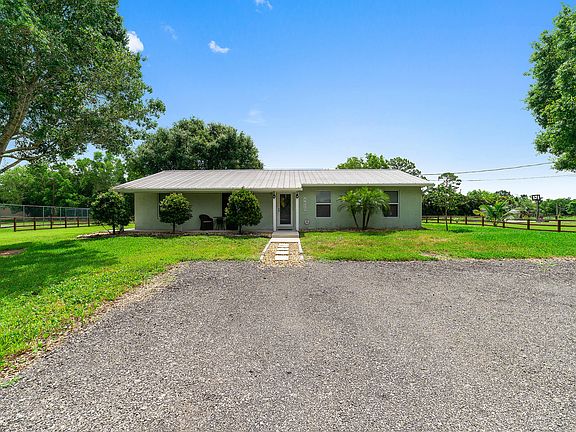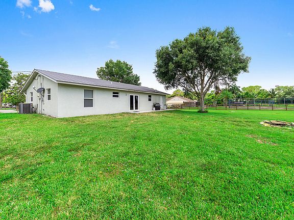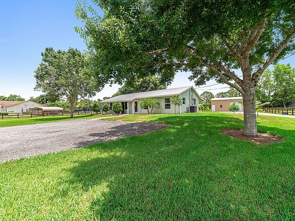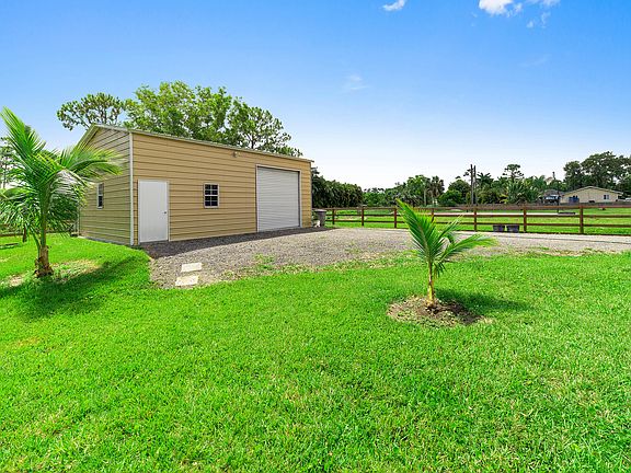 Gorgeous 4/2 CBS home in Loxahatchee with a wrap around driveway and lush landscaping to detached garage. Metal roof installed in 2013, A/C installed in 2010. ALL IMPACT WINDOWS AND DOORS! Large renovated kitchen with stainless steel appliances and LOTS of counter space. **Entire property is fully fenced with a new wood and wire fence, stained and weather sealed** Property has a 20x30 metal building with a concrete slab and full power that was built in 2016 just in the back yard. PERFECT FOR STORAGE, OFFICE, GYM, TOOLS OR TOYS.