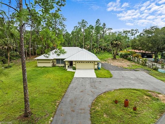 Embrace Nature's Beauty in Naples, FL! Nestled on a serene tree-lined street in the pristine and private setting of Collier Woods, this 3-bed, 2-bath residence is a testament to comfort and style. Situated on 2.5 acres, it's the perfect retreat for those who crave tranquility while desiring city convenience. Step into the inviting and spacious living room, adorned with cathedral ceilings that bathe the space in natural light. The stylish kitchen, positioned at the heart of the home, boasts luxe finishes and large windows that frame the beautiful outdoors. The expansive bedrooms offer a sanctuary of peace and relaxation, while the newly updated bathroom showcases luxury upgrades and finishes.Outdoor enthusiasts will relish the generous porch and outdoor space, offering ample room for a potential pool or even a horse paradise. With a double car garage and a location close to A-rated schools, amenities and dining. Schedule a viewing today!
