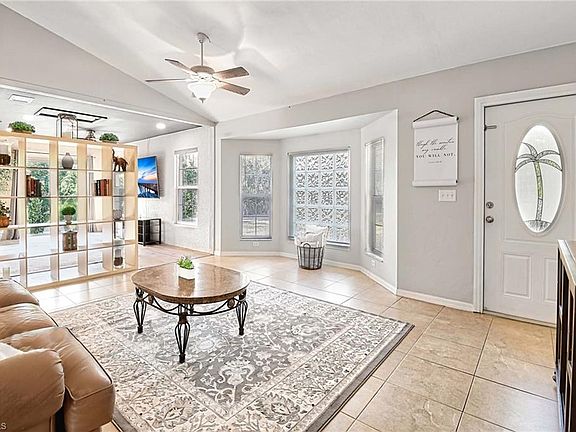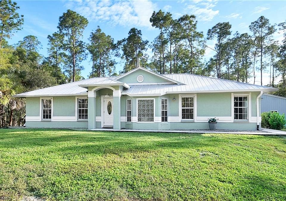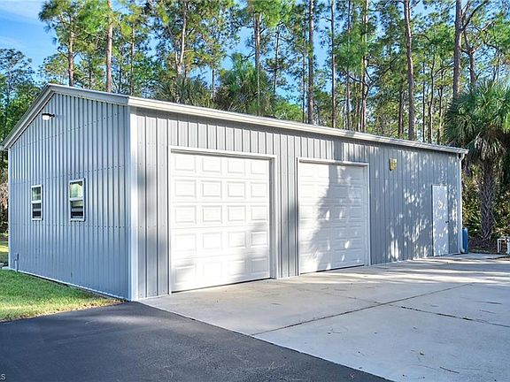Welcome home to your private oasis on 2.5 acres of high and dry land in North Naples! This 3 bedroom plus bonus room/2 bath home is situated on a very peaceful lot, set way back for maximum privacy. Take the long, winding asphalt drive through your gated entry up to the large parking area and 960 sq. ft. 2-car detached steel frame garage with spacious workshop. Perfect for a home business! Enjoy the modern, open kitchen with white shaker cabinets, leathered granite and high-end stainless steel appliances, including double oven. The original garage has been converted and offers a unique bonus room space...man cave, she-shed, game room, theater room...you decide. The possibilities are endless! All hard surface flooring, so no carpet! Metal roof (2017), newer a/c (2020), new water heater (2022), and new well pump (2020). This is FLOOD ZONE X. The HUGE garage with separate workshop was constructed in 2020 and features upgraded insulation, siding, lighting and fans. Say hello to your friendly neighborhood deer while looking out your kitchen window into you own serene piece of paradise! This is the one you've been waiting for!