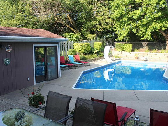 Welcome to 4630 Allyson. This beautiful home has the most private backyard that you could hope for! It backs up to a heavily wooded 30 acre nature preserve teaming with wildlife! The backyard also features a stunning in ground pool with a slide and diving board and also has a new liner! There is plenty of grass, play equipment, and beautiful landscaping to enjoy. A large pool house, deck, patio and easy access to the bathroom makes this the perfect back yard for entertaining! Inside you will find a large kitchen and eating area with easy access to the garage. The living room has a great bay window and plenty of space. There is also a second living room with a beautiful stone fireplace, soaring ceilings and plenty of storage space. 3 bedrooms, 1 bathroom upstairs and a finished basement!