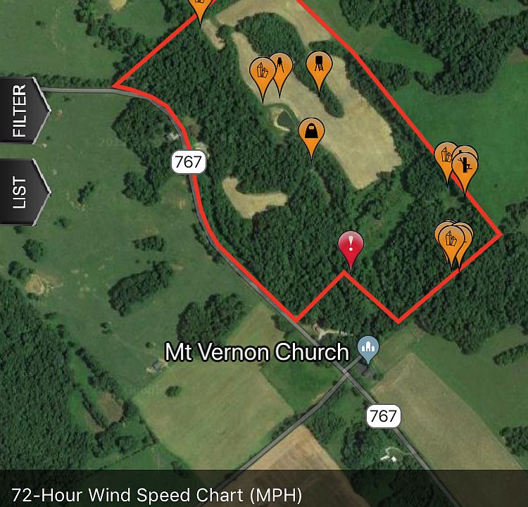 72.5 acres. 16 acres tillable ground. Has a pond on it as well as shooting house overlooking the pond and the crop field. Has 3 food plots which I bowhunt over. Abundant turkey, deer, coyotes, fox, and bobcat. I lease the tillable ground to a farmer which allows me to expense the farm off on taxes. Pleas ignore the info about a house. There is no house. Just land
