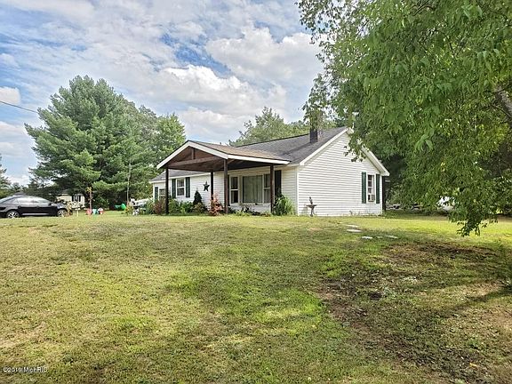 Great starter home for a great price! This is ranch home with 2 bedrooms and 1 full bathroom. Both bedrooms have fresh paint! One floor makes for easy access with laundry located in the back of the house. A nice feature is the spacious living room that everyone can lounge around in. The living room has a chimney built for a wood stove if the owner chooses do to so. Off the front of the home is a newly built roof that the current owner had intentions of installing a slider and patio area. It's a great start and would make for a nice addition to the home! The home also has a detached 2 stall garage! In the large back yard, sits a storage shed. Don't miss out on this opportunity! Only a 10 minute drive to US 1-31! Just a short drive to Hardy Dam.