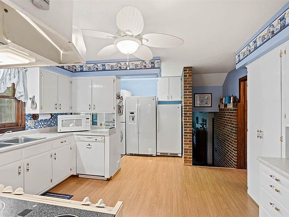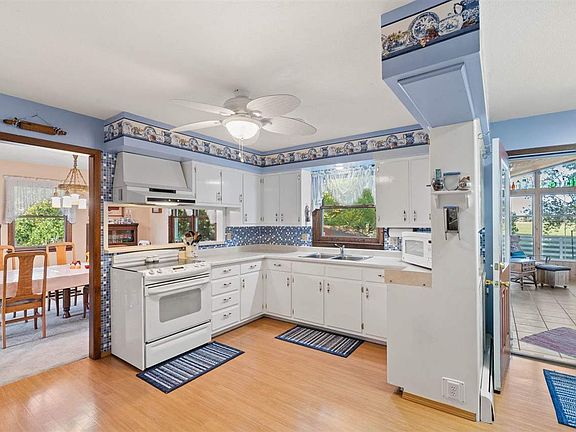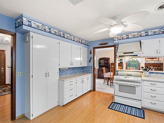 Nestled into a half-acre setting surrounded by extensive landscaping, mature trees and plantings is this welcoming multi-level home offering lovely interior and exterior ambience. Excellent entertaining home with a spacious and bright living room and formal dining area. The main level kitchen features white cabinetry and leads to the newly added charming 3 seasons room overlooking the private backyard. Main level laundry with stackable washer & dryer. Lower-level walkout family room with gas fireplace. Versatile and utilitarian bonus level with a recreation room and woodworking shop area. The upper level has a primary suite boasting a private walkout balcony with phenomenal Iowa countryside views and primary bathroom. Upstairs you will also find 3 additional bedrooms, a full bathroom with a jet tub and a walk-up attic lending additional storage space. Spacious 2 car garage. Expansive yard with a patio, porch with a front porch swing and flower boxes, two garden sheds, all weather white yard fence, fire pit area with benches, apple, peach, mulberry & apricot trees. You won't want to miss this exceptional home!