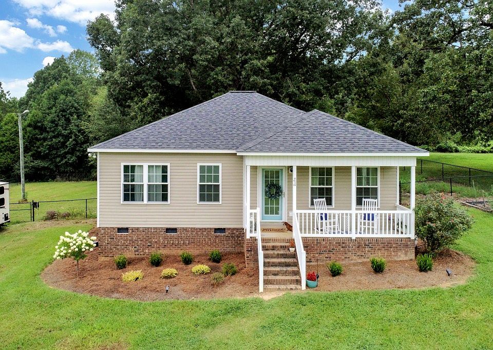 Custom built in 2010, this adorable single story in a country setting is sitting on over an acre of open land with a few mature trees and fenced in back yard. It has 2 bedrooms with a flex space off of the master perfect for a nursery, office, or exercise room. Lots of room inside and out with large Trex deck in the back and a very cute front porch perfect for a couple of rocking chairs. Great neighborhood in a country setting. Sellers offering home warranty with acceptable offer.