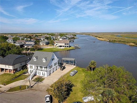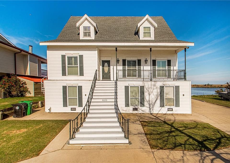 Enjoy Bayou Sauvage for yourself in this elevated & spacious 3-bedroom, waterfront dream home. Majestic water views from the beautiful raised patio & the deck. Enormous flow-thru living & dining area w/ a chef's kitchen & top-of-the-line appliances. Sun-bleached bonus/entertainment rooms w/ plantation & storm shutters! Roomy primary bath with walk-in tiled shower. Also comes with a spacious 3-car garage w/ a half bath inside and your very own dock/boat slip after your cruise in the water. Come see it now!