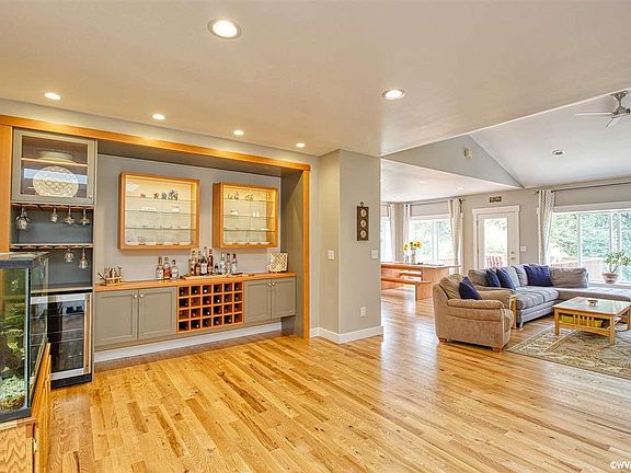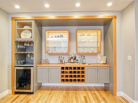 Stunning open floor plan 4 bedroom 3 bathroom home featuring character grade red oak floors & exposed Douglass fir trim. Kitchen includes quartz countertops, stainless steel appliances, and deep pull-out pantry doors. Custom bar with wine fridge and lighted display cabinets, mudroom, large bedrooms and a tankless water heater. Located on a quiet lot that backs up to green space. This home is a must see!