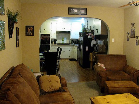 Owner related to Listing Agent. This home is a real Creampuff. Arched doorways compliment the updated home. Built in separate Electric oven & Gas cooktop, dishwasher, Laminate wood flooring in kitchen and hallway. Both bathrooms totally remolded. Mud room off garage, Sprinkler system, Large fenced backyard, New roof 2014, Jefferson elementary is located at the end of the street. Minutes from a clinic, Kell hospital, Popular restaurants, Market Street and Pharmacies.