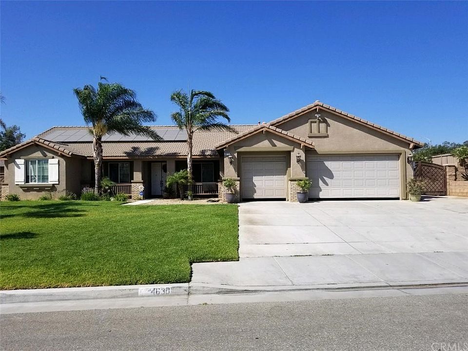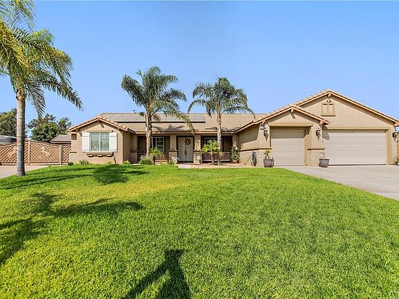 Entertainer's Delight Estate with a GUEST HOUSE Single Story Horse property Ranch Home with a Sparkling Pool a Casita in one of the most Exclusive areas in Jurupa Valley called Arabella Ranch. Single Story Pool Home on almost 1/2 acre property. This home has a huge pool surrounded by cement this yard has a Tropical scenary with a state of the art barbecue station perfect for entairtaning. This home has RV parking and a 3 car garage. The casita is a brand new built under 1 year old it has a 1 bed 1 bath its about 1400 sq feet. The home has laminated flooring thru out and granite countertops thru out as well as its own Central air. The Casita also has an outside bathroom and shower for the pool guests to use. The home is surrounded by custom iron gates perfect for security. The main home has Solar panels thru out. The pool also has a new pump. This home has too many fruit trees which include pomegranites, limes,oranges and other mature fruit trees. The property has custom cement thru out the property perfect for low maintenance . This home has california patios with custom fans perfect for entertaining as well as an RV parking perfect for those toys. Come see this home has it all. you wont be sorry Hurry it will not last. This is Truly a Families Dream Custom Home. Why dream it when you can live it.