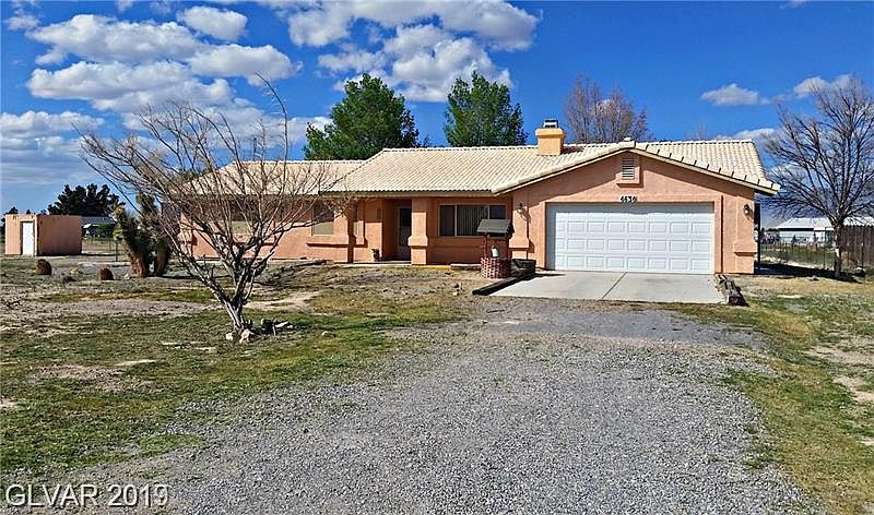 Cute 3 bed 2 bath home on south end of town. Great home for commuting to vegas for work. This home is on 1 acre well/septic. Fully fenced yard. Has fireplace on interior, covered patio in back, 2 car attached auto garage. Call to view this home today.