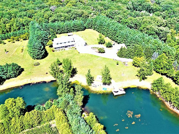 Escape to your own private retreat with an updated country home on over 20 wooded acres. The 4+ bedroom, 4.5 bath home with a big wrap-around porch is nestled amidst lush woods and graced by the tranquility of a serene pond with a private dock and lighted fountains. Welcome to a world where modern comfort meets rural living and natural beauty. As you enter the property through the ornamental gated security entrance, you will drawn down the beautiful tree-lined lane to what is called Black Walnut Farm. The dozens of walnut trees, as well as numerous other species of oaks, maples, hickory, pines and many planted fruit trees, create a beautiful and natural wildlife lovers' paradise. Immediately upon entering the property, you will be impressed by all the thought and care that was involved in developing this incredible country estate. Many details of the natural and landscaped areas of the pond and yard will provide much enjoyment outdoors. The waterfront dock, the wood firepit with gas starter, the covered porches and decks, the grilling and dining area, pool, hot tub and miles of wooded walking trails are just some of the property's features. There's even a private shooting area and plenty of deer, turkey, waterfowl, and small game if you enjoy shooting and hunting sports. The oversized attached garage is perfect for hobbyists, car collectors or just to house your vehicles and toys. The separate large garage provides additional storage space and has pens and a small pasture for the two pet goats currently living on the property. Inside, you'll find a spacious, partially open-concept layout that makes great use of the almost 6,000 square feet of finished living space. Plenty of windows allow the living areas to be bathed in natural light and provide great views. The big dine-in kitchen is a chef's dream, with a center island cooktop, bar seating, granite countertops, ceramic floors, stainless steel appliances, and ample storage. Imagine sipping your morning coffee from your coffee bar in the breakfast nook or on the front porch overlooking the peaceful pond. The main level also boasts a living room, family room, a bar/reading/office area and a yoga/meditation room. One of the 4.5 baths and an off-garage mudroom with hall lockers are also on the main floor. Upstairs is the primary suite, complete with a decorative fire accent, a spa-like bath, big walk-in closet, and dressing or sitting area. Three additional bedrooms and two tastefully appointed modern baths provide plenty of space for family, friends, or guests. Each bathroom is tastefully appointed with modern fixtures, and one has access from one of the bedrooms. A second-floor laundry is an added bonus for living convenience. In the partially finished basement, there is a living area, a gym, a craft room or workshop and another bathroom in construction. The new owner may have some input on the finishing touches. Outside, the expansive deck offers a perfect spot for alfresco dining while taking in the wooded views and the soothing sounds of nature. Explore your own private forest or spend lazy afternoons fishing by the pond. With over 20 acres of land, the possibilities are endless. This rural haven provides the perfect retreat from the hustle and bustle of city life. Don't miss this opportunity to make this peaceful oasis your own. Your dream country home awaits! Contact the listing agent for an appointment and private showing.