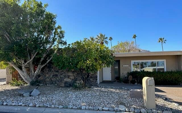 Welcome to a Mid-Century modern condo built in 1961 with a pool, golf course and mountain views in South Palm Desert. Located on a cul-de-sac street. This home has a very open floor plan with a large living area. Property needs some TLC. Solar panels from Sun Run are on a lease. Enjoy the Shadow Mountain Golf course & club with NO HOA. There are CC&R's, but there is no HOA for a certain area of Shadow Mountain. This is an end unit with direct access to the back yard for easy access! Walk to El Paseo and enjoy all of the wonderful restaurants and shopping. Don't miss out...