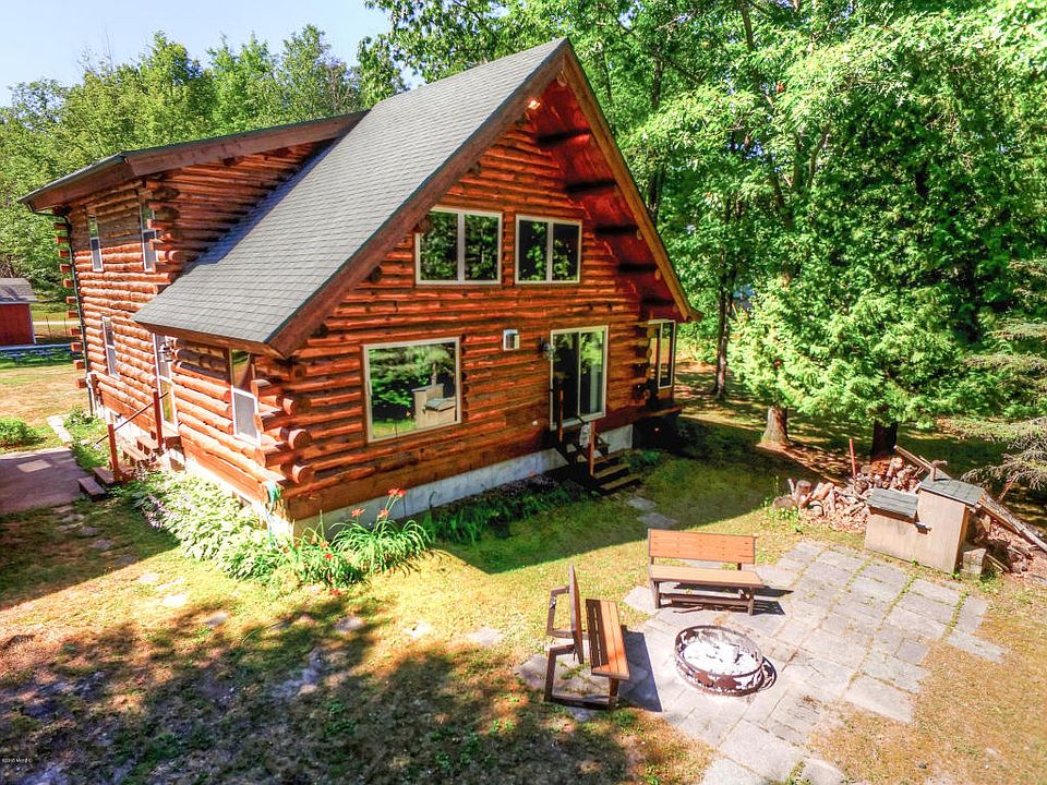 Relax on the covered deck and watch the river go by from this beautiful log home on the Pristine Muskegon River. This warm and inviting cabin features a log interior with soaring cathedral ceilings in the open living area and river views to die for. 1 bedroom and bath located on the main floor and 2 bedrooms, bath & sitting area are in the upper level. The home also includes a full poured wall basement with a large recreation room, a screened porch, covered deck and a gas fireplace in the greatroom to take the chill out of our crisp Michigan mornings. Built in 2004 with red pine logs that were harvested from the 45 acres across the road that is also included with the home. The land is a beautifully wooded parcel with groomed trails, a cement block building & a Pole building for your toys.