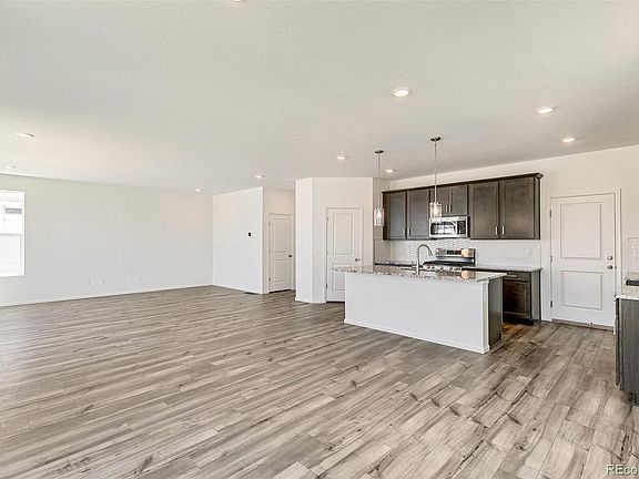 This two-story home boasts a charming design, blending modern comfort with classic appeal. The exterior features a welcoming porch, perfect for enjoying the outdoors. As you step inside, you're greeted by a spacious living area adorned with large windows, filling the space with natural light. The first floor comprises a cozy living room, a well-appointed kitchen with an adjacent dining area, and a convenient half-bathroom. Ascending the staircase leads you to the second floor, where you'll find three bedrooms, each offering ample space and closet storage. The primary bedroom includes an en-suite bathroom for added privacy and luxury. Additionally, there's a versatile loft area, ideal for use as a home office, playroom, or relaxation space. Throughout the home, high-quality finishes and thoughtful details enhance its appeal. With its functional layout and stylish features, this residence provides a comfortable and inviting haven for its occupants to enjoy. Situated in the desirable Revere community, residents will enjoy the benefits of a well-planned neighborhood with green spaces, community amenities, and a welcoming atmosphere. Johnstown, Colorado, provides a picturesque backdrop for this residence, combining small-town charm with modern living. The Listing