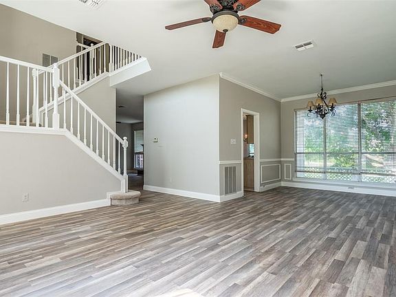 Beautiful Home recently updated! Great central location in North Carrollton! Fantastic sought after schools! Recent upgrades include laminate flooring through out downstairs, paint, scraped popcorn ceilings downstairs, retainer wall, master bath with walk in shower and frameless glass doors, beautiful tile, ceiling fans, roof, driveway and lighting! This home has a fantastic view of a pond and waterfall! A great place to relax and unwind, offering great views of the adjacent lake & greenbelt shared with Castle Hills! Relaxing and beautiful hidden treasure! The Listing Agent is Owner of this Property.