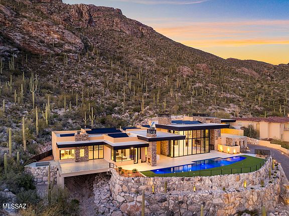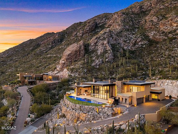 Perched atop the majestic and breathtaking Catalina Mountains, this one-of-a-kind modern masterpiece indulges all the senses and conveys the stunning desert southwest lifestyle on a highly desired 4.31-acre hilltop lot at the very top of Swan Road, in the coveted Summit gated community. Luxurious attention to detail in every living space of this 5 bedroom, 7 bath, 6,788 SF oasis in the desert. Stunning floor to ceiling sliding windows provide electrifying panoramic city views, while the magnificent Catalina Mountains integrate seamlessly into the warm and functional outdoor entertaining space. High end finishes with eye-catching detail run throughout the home, while lush desert and regal saguaros embrace and surround the entire estate that boundaries with the Coronado National Forest. Elegant, modern, and masterfully designed by master builder Monty Bartholomew, with collaboration from Architect Bill Gansline, this home will set the standard for high end luxury living in Southern Arizona. Early purchase allows buyers the opportunity to work with builder on selecting finishes and cosmetic touches, which will enhance and define the overall feel and experience of owning this amazing, and one-of-a-kind home. Estimated completion December 2023.
