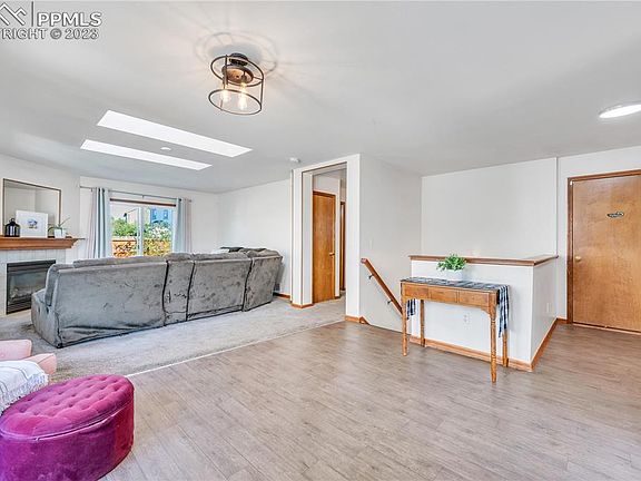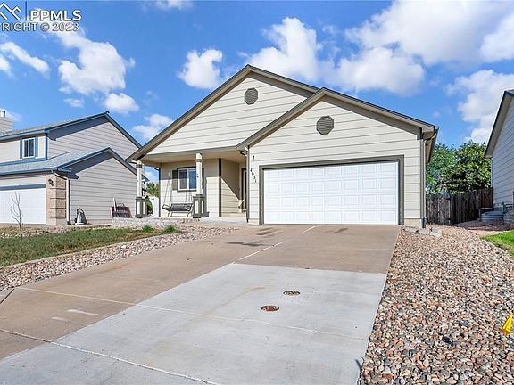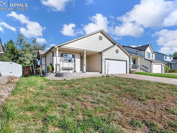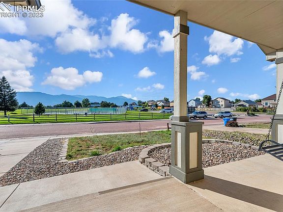 Situated just steps away from a charming park, this property offers breathtaking views of Pikes Peak and the front range. Enjoy those views from your front porch. Its strategic location provides easy access to military bases, I25, and great shopping and restaurants. The residence features a easy access to military bases, I25, and great shopping and restaurants. The residence features a 4-bedroom, 2- bathroom rancher with the added comfort of central air conditioning to beat the summer heat. The main level boasts an open concept layout, complete with a kitchen featuring a convenient counter bar and all essential appliances. Enjoying the dining area's bay window and relax in the great room, which features a gas log fireplace. Two bedrooms and a full bathroom finish off this level. The finished basement adds an extra dimension to the home, providing a spacious room for entertaining guests, tow bedrooms, laundry and a full bath.
