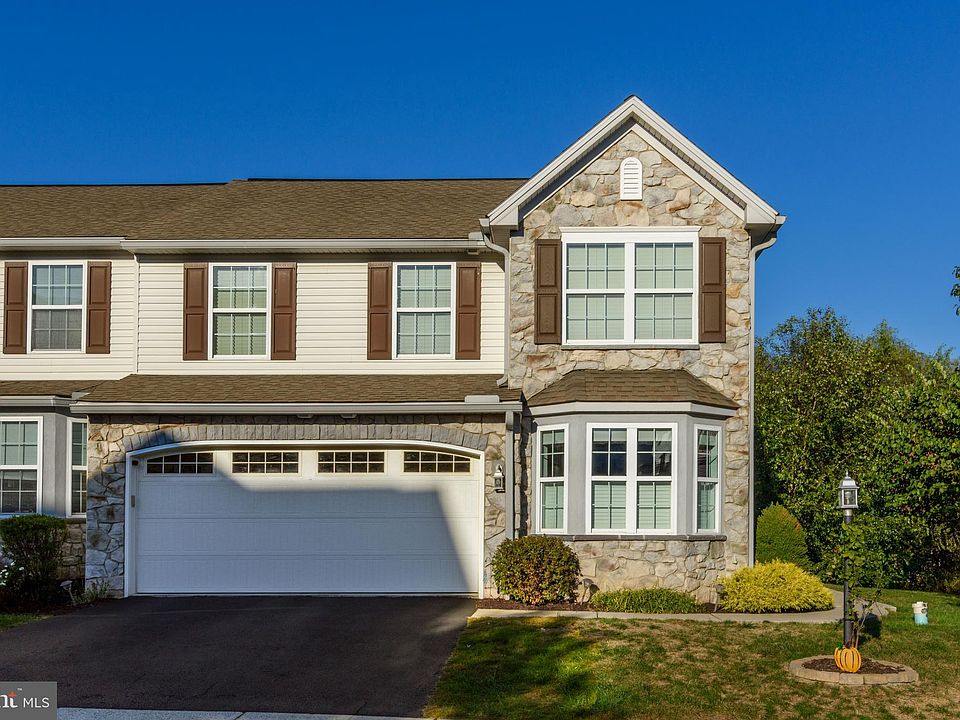This lovely town home, built by Classic Communities, has it all!! End unit, first floor primary suite, first floor laundry, two car garage, partially finished walk out lower level. Very nice kitchen with a breakfast nook that includes all stainless steel appliances plus washer and dryer. The living room features a vaulted ceiling, a natural gas fireplace and skylights. From the living room you can walk out to a maintenance free vinyl deck to enjoy the outdoors. The first floor primary suite is fully equipped with a walk-in-closet, double sinks and a walk-in shower. Upstairs are two nice sized bedrooms a bathroom and a spacious multi-purpose loft area. Over 700 square feet of finished area is in the walk-out lower level. A gas stove keeps it cozy in the winter. French doors open to a covered paver patio and private back yard with a little stream. Natural gas heat and water heater. All blinds stay. Sellers are taking all of the drapes except those in the kitchen.
