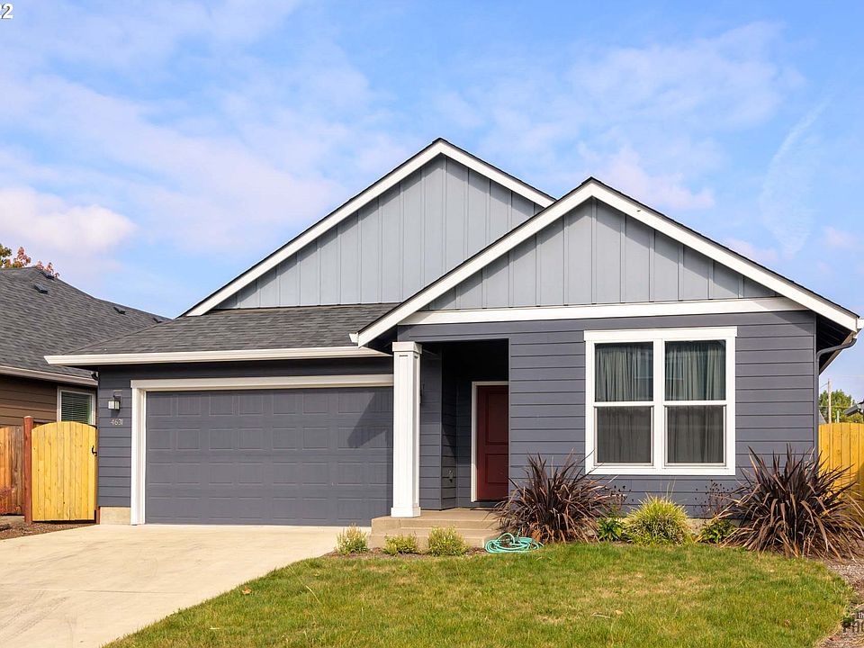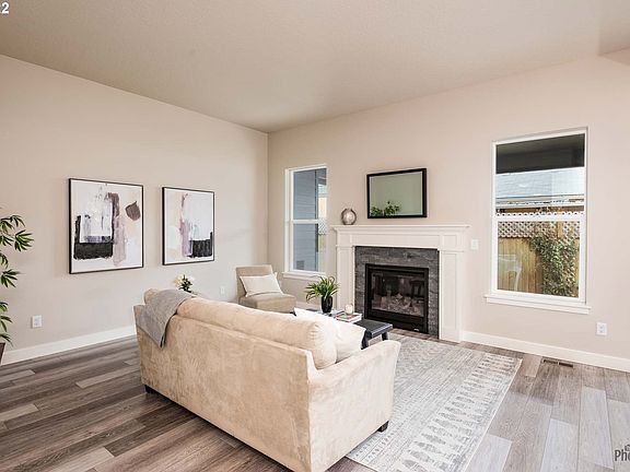 2019 Bruce Weichert home! Single level with open living. Kitchen has SS appliances and large island with seating. Cozy up to the gas fireplace in the living room. Separation of space between primary bedroom suite and additional 2 bedrooms. Door to covered back patio and easy care yard. See floor plan in photos. All appliances included! This one is ready for you!