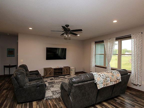 Nearly new construction, without the new construction price! This home is only available to due job transfer. Located in a quiet, rural neighborhood just off Highway 212 makes this a short commute to the west metro and just 20 minutes from Hutchinson. This oversized 4 bedroom rambler features a large custom kitchen with center island, granite counters, custom cabinets, black stainless appliances & walk in pantry, 9' ceilings, 6 panel doors, main floor laundry, mud room, primary bedroom with double walk in closets & bath. Lower level includes 2 bedrooms & full bath with separate vanities. Unfinished lower level area is ready for a future family room. Large yard with new landscaping. Oversized 3-