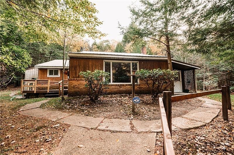 Enjoy seclusion on this tucked-back home or camp that sits on +/- 11.28 acres. The peaceful sound of the creek, wind blowing through the pines, the birds chirping, and wildlife roaming, make this unique offering one you will want to call your own. When you walk out of your back door and cross the creek from your own private wooden bridge, you are greeted with an open grassy area surrounded by trees that is perfect for campfires, camping, sighting in your bow and much more. This property offers partial wooded acres, making it the perfect place to hunt and enjoy the wildlife around you. The home offers main floor living, with an open concept, a spacious laundry room right off the deck, a fully finished attic, 2 car garage (with electric and heat), separate wood shop (also with electric and heat) and shed.