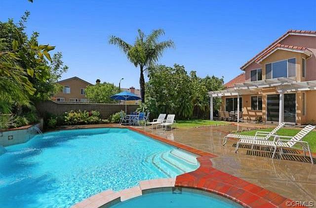 Beautiful 4-bedroom plus bonus room corner lot home in the desirable community of The Ridge at Belmont Estates. This home has beautifully landscaped front grounds leading to a double door entry. Inside there is a foyer, formal living room and dining room. The kitchen is off the dining room and opens to the family room. Features of the kitchen are a center island with a cook top, double ovens, oak cabinets and spacious counters. The family room has a brick fireplace and over looks the lushly landscaped back yard with a pool, spa and patios. There is also a main floor bedroom, laundry room and full bath. The second floor has a spacious master suite with a retreat and the master bath features double sinks, a separate tub and shower and walk in closet. There are two additional oversized bedrooms and a bonus room which could be a 5th bedroom. This home features a lovely patio with an amazing pool and spa, fully landscaped and very private backyard for entertaining!! 3-car garage with built in cabinets for abundant storage, NO MELLO ROOS and low association dues. Close to schools, freeways and shopping.