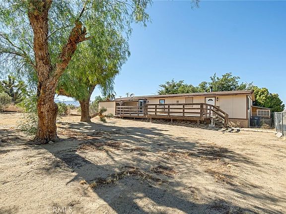Peacefully set on a tree-lined street in a secluded neighborhood, this delightful Mojave manufactured home on a generous lot offers the laid-back country lifestyle you crave! Step inside a bright interior where vaulted ceilings soar over crown molding and crisp white tones, creating a welcoming atmosphere across the flowing living areas. An inviting stone fireplace lends a warm ambiance, while a chic chandelier sets the mood for intimate celebrations in the adjacent dining alcove framed with exquisite etched glass internal windows. Featuring abundant cabinetry, a pantry, and gleaming countertops extending to a multi-seater breakfast bar, the kitchen is sure to impress. Serene desertscape views await you in the four versatile bedrooms, all graced with large closets to keep you organized. The primary suite pampers you with a convenient ensuite highlighting a separate step-in shower and a soaking tub. Through glass sliders, take your memorable gatherings out to the extensive railed wooden deck overlooking the wide yard. Additionally, there’s a laundry area, multiple storage sheds, and a detached 2-car garage. Come for a tour before it slips by you!