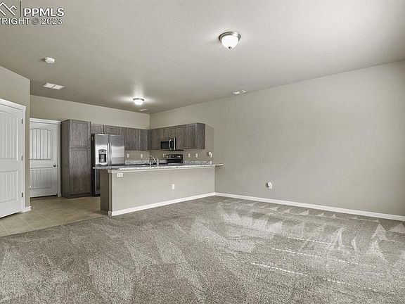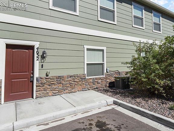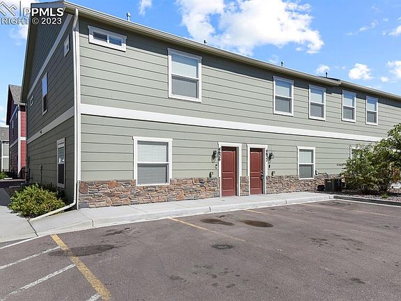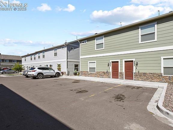 Welcome home to this nearly new beautiful 2-Story townhome. This unit is move in ready. When you walk in the front door you notice the large open concept. The main level is perfect for entertaining. The kitchen boasts ample cabinet space, breakfast bar, stainless appliances pantry and walks-out to the finished 2 car garage; large living area and a convenient 1/2 bath. The second level features a large primary bedroom with attached en-suite private bath with double sinks and a walk-in closet; 2 large secondary bedrooms; hall bath and a laundry closet. Located convenient to Ft. Carson, Schreiver AFB and Petersen Space Force base. This unit is convenient to shopping and Interstate-25. Well cared for complex.