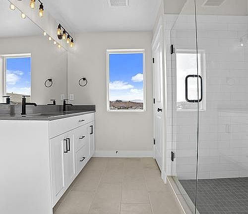 welcome you in with the open-to-below entryway for plenty of natural lighting to shine into your living space. The Anasazi includes 4 bedrooms and 2.5 bathrooms, with a flex room off the entry to turn into anything from a home office to a craft room or additional bedroom. The main living space has an open-concept layout, for a natural flow from the kitchen to family room. Upstairs you'll discover a loft for additional space in your home, a convenient laundry room, and the spacious primary suite that includes a gorgeous bathroom, and large walk-in closet.