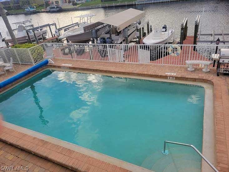 Gulf access condo with deeded dock and 10,000 pound boatlift. 2/2 corner unit that is move-in ready. Well maintained unit that is being sold turnkey. Impact glass windows and Storm Smart roll down screens on patio. End unit with beautiful view of the Rubicon canal. Some Newer appliances dishwasher, dryer and garbage disposal. Association had a new roof installed in 2018. Local seller with quick response. Can close by the end of 2022. No pets. 4 rentals per year 90 day minimum. Both bedrooms are spacious. Master has a large walk-in closet and shower. Guest bathroom has a tub/shower. Plenty of closet space. Enjoy the view from the two sets of sliding glass doors onto the patio.