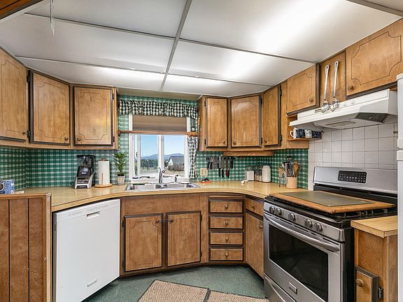 Sweeping Cascade Mountain views in this adorable, retro-style manufactured home. Incredible off-grid power system 110 and 220 w/breaker system.100,000 BTU furnace and wood stove. Power is right down the road.There is a SDC to buyer at closing of 1% of purchase price up to $1000. Has been moved twice. Seller states bid for power from CEC is $7,138.75.