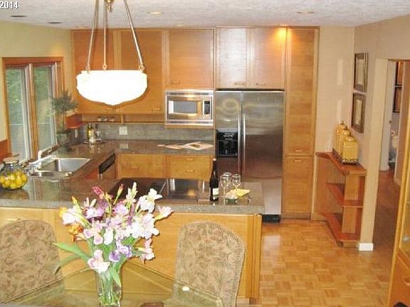 Beautiful home on private lot! Living room w/large east & west facing windows, vaulted ceilings, new carpet & gorgeous marble fireplace. Large sunning deck off kitchen. Master suite has relaxing fireplace, bathroom w/jet tub, double-head shower & skylight. Lower level has 2 bedrooms, family rm, large storage/craft area. Garage w/shop, backyard with large deck & abundance of storage & built-in throughout.
