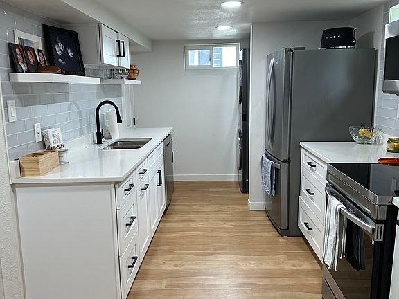 Recently Remodeled Basement Apartment Near Sloan's Lake! Live just minutes from downtown Denver in this beautifully updated basement apartment located in the highly sought-after Sloan's Lake neighborhood. This spacious unit features brand-new flooring throughout and a fully remodeled kitchen equipped with stainless steel appliances including a new stove, refrigerator, washer, and dryer for your convenience. Enjoy easy access to Sloan's Lake, top-rated restaurants, cafes, shops, and public transportation. Perfect for anyone seeking a stylish and comfortable home close to everything Denver has to offer All utilities included. Single occupancy only. Security cameras on premises. One car garage included with remote. No smoking or pets. Quiet hours 10 pm-7 am. Owner's mother lives in the main unit. Separate entrance to basement unit.