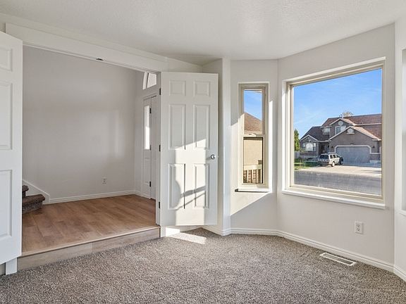 Come see this beautifully remodeled 2-story home in the heart of Hooper! Fresh flooring, new paint, updated bathrooms, and brand-new stainless appliances. The vaulted grand entry sets the tone, and a private in-home office with a door makes working from home easy. With 5 bedrooms, 3.5 baths, front room for guests, large family room for entertaining, a spacious kitchen, along with a mudroom for everyday ease, this home offers both comfort and function. The large primary suite occupies its own floor just steps from the other 3 bedrooms upstairs and it features vaulted ceilings, bay window, dual sinks, soaking tub, separate shower, and walk-in closet. The basement provides a mini suite with a private bedroom and dedicated new 3/4 bathroom along with ample unfinished space for storage or potential to add another room. Extra-wide garage, no back-door neighbors, and stunning mountain views. New refrigerator, washer, and dryer included!! Extra wide RV parking with double gate and a private gate to the Hooper Slough walking trail. Quiet neighborhood with highly rated schools-move-in ready! Schedule your Private Showing Today!