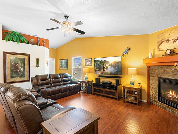 Step into your bright and open dream home today! Upgrades include roof replacement in 2018, vinyl insulated sliding glass door and windows, new stucco in 2021 and upgraded HVAC system in 2015. Spacious open floorplan featuring raised ceilings, gas fireplace, ample windows and gleaming vinyl plank flooring. The kitchen boasts stainless appliances, gas range and new Whirlpool dishwasher installed in 2023. Primary bedroom has double vanity, large soaking tub and separate shower. Thanks to the large corner lot, the backyard is a stunning sprawling retreat with covered patio and easy landscaping. Schedule your tour before it's gone!