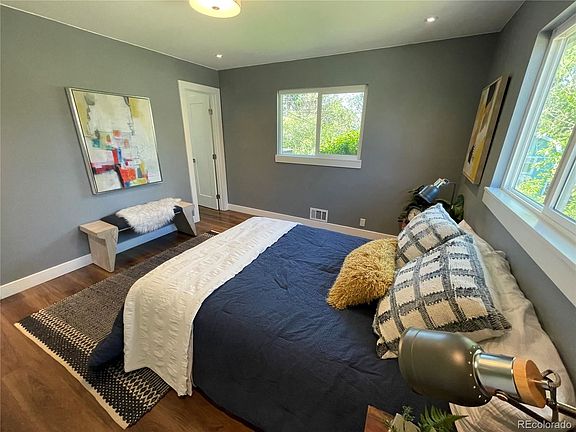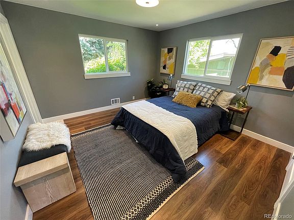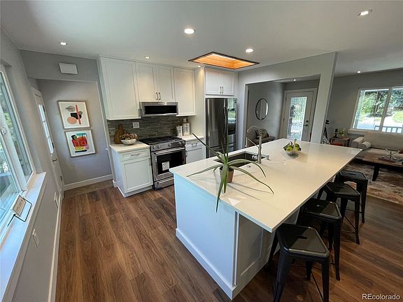 Welcome Home! You'll fall in love with this completely updated ranch-style home with gorgeous finishes throughout on a quiet tree-lined street! A classic covered front porch with a picturesque porch swing and fresh exterior paint provide a warm and inviting welcome to a newly renovated open layout waiting inside just ready for entertaining, enhanced with new energy-efficient windows throughout, main-level easy-maintenance luxurious vinyl plank floors, lower-level plush carpeting, fresh interior paint in a neutral color palette with crisp white trim, recessed lighting & light fixtures, new electrical panel, fully remodeled bathrooms and kitchen and new furnace, A/C, and tankless water heater - to name a few highlights. A gorgeous, chef-worthy kitchen is sure to please boasting ample custom white shaker cabinetry, sleek quartz countertops, modern stainless steel appliances including a desirable gas range, and a large center eat-in island that's perfect for easy meal prep. The primary bedroom is complete with a 3/4 en suite bathroom. The 2 other main-level bedrooms share a newly renovated full bath and two other bedrooms can be found in the basement with a nearby modernized 3/4 bath that's great for guests' privacy. Enjoy movie night entertaining in the basement family room, or a perfect haven for a teen retreat. Savor Colorado summertime evenings on the new concrete patio and extensive deck where views of nature are aplenty. Great location to shops, restaurants, Little Free Library, and Colorado Blvd to quickly get you anywhere you need. This move-in-ready gem is a must-see and waiting for you to call it yours!