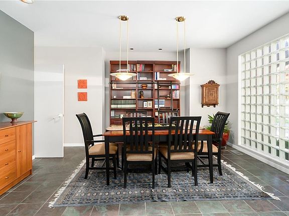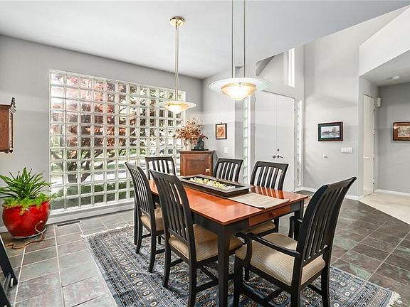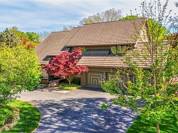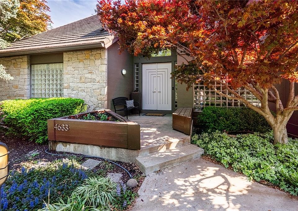 A rare architectural gem in Lawrence’s Alvamar neighborhood, 4633 Muirfield Dr offers custom design, privacy, and space in a contemporary layout. Built by an architect with a vision for clean lines and geometric forms, the home blends Art Deco Revival features with a warm, inviting atmosphere. Set on beautifully landscaped grounds backing to Jayhawk Club greenspace, the property showcases English garden–style design with stone pathways, mature ground cover, and seating areas framing a serene pool retreat. Inside, floor-to-ceiling windows, skylights, and vaulted ceilings flood the home with natural light and offer stunning views of the pool, gardens, and greenspace. The main level includes two living areas—one with a dry bar and a double-sided fireplace—formal dining room, dinette, kitchen with exceptional storage and island, plus a walk-in laundry. The expansive primary suite features a jetted tub, tiled walk-in shower, walk-in closet, private patio, and an attached sitting room/office with double French doors. Upstairs are two bedrooms sharing a Jack and Jill bath, a third with its own full bath, and an open loft. The finished basement adds versatility with a large living area, two non-conforming bedrooms, full bath, movie room with kitchenette, and unfinished storage. The backyard is designed for both relaxation and entertaining, with an in-ground pool and fountain, seating areas, and a freshly stained deck (2024). The 3-car garage offers updated painted doors and generous space. Homes of this caliber rarely come to market in Alvamar; this one is perfect for those seeking a private retreat, an entertainer’s haven, and a true statement of design.