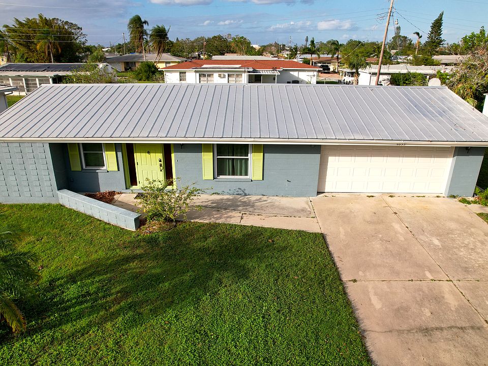 Welcome to this beautifully maintained midcentury modern home, now available as an annual rental. Offering over 1,500 square feet of living space, this two bedroom, two bathroom home has many features that you don't want to miss. As you enter, you're greeted by a large, open living room that flows nicely into the kitchen, featuring granite countertops. From the kitchen, you're overlooking an expansive living area that stretches across its entirety, offering flexibility perfect for a family room, home office, or entertainment space. Another great feature this home has to offer is the primary bedroom has been completely remodeled. Practical features include a spacious two-car garage with a dedicated workspace, ideal for projects or storage. The home is equipped with hurricane-impact windows for added safety and peace of mind. Outdoors, you'll find an enclosed back lanai, perfect for relaxing and enjoying Florida's beautiful weather. The fully fenced backyard features a large space for activities, along with an above-ground pool and spa for year-round enjoyment. Conveniently located near shopping, transit, grocery stores, and restaurants, this home is just a short drive from Florida's stunning beaches. Don't miss the opportunity to make this charming property your next home schedule your showing today! Annual lease. Non-smoking property. Pets are allowed. Tenant's pay utilities.