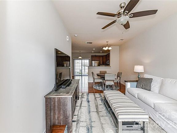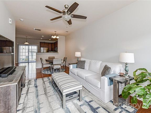 Have it all here! Easy access to 485, just around the corner from Prosperity Village, restaurants, grocery stores and more! HOA includes lawn care, water/sewer, exterior maintenance, clubhouse, fitness room and outdoor pool. This spacious town home has 3 BEDROOM and 2.5 BATHS. Main level features OPEN FLOOR PLAN w/ hardwoods throughout, half bath, & laundry. Kitchen boasts SS appliances w/ GAS RANGE, granite countertops & eat in breakfast area that overlooks the family room. Upper level has large primary bedroom with walk in closet, TWO secondary bedrooms, guest bath w/ soaking tub. Private patio that was upgraded in size with builder.