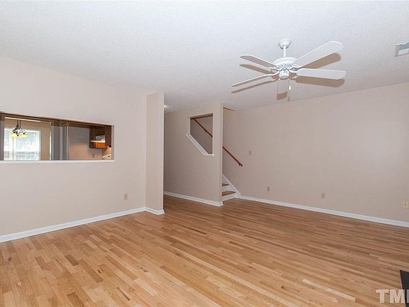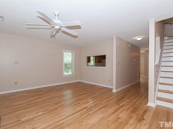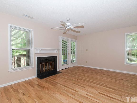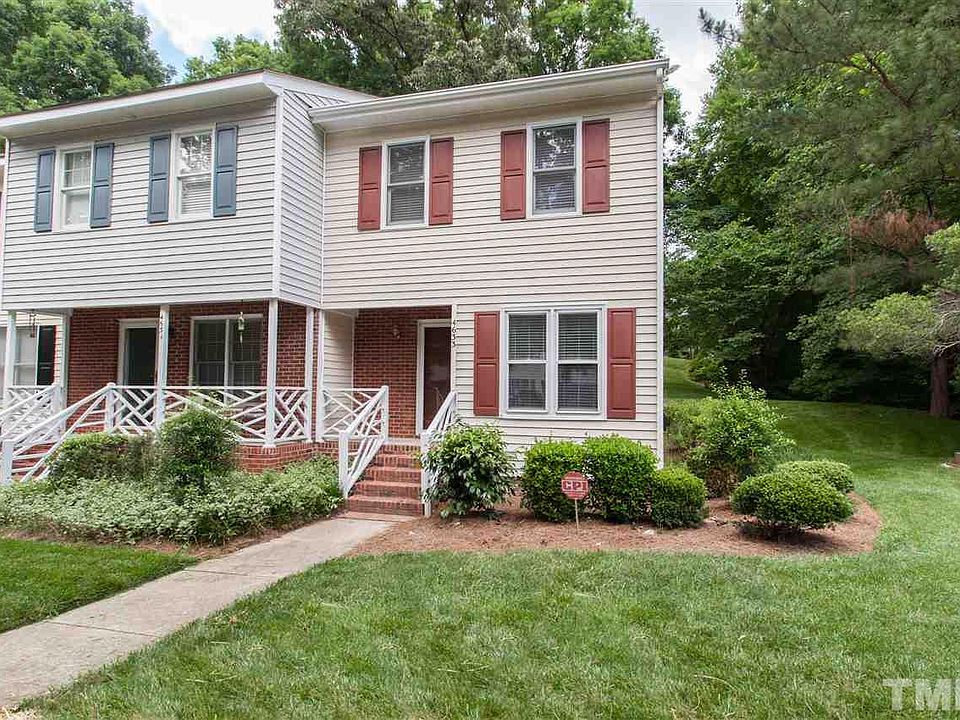 Fabulous 2 Master bdrm end unit. Hrdwd & tile flrs through out entire home. New smooth-top stove 2009, dishwasher 2011, AC-heat pump 2012, Deck 2013, disposal 2014 & New Water Heater 2015. Cook friendly kit w/pass thru to lrg liv rm featuring a wood burning frpl & french doors to private deck. Separate Din rm. Spacious MB has his/hers closets & private bath w/skylight & dressing table. 2nd MB also offers his/hers closets & private bath. Community pool & tennis courts, Convn to Umstead Park & Crabtree Mall