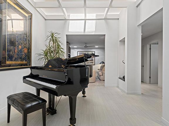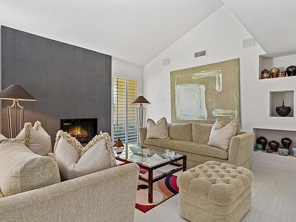 A masterpiece of craftsmanship awaits you at this stunning South Palm Desert home. A refined look was achieved with the help of a variety of exceptional finishes during the extensive renovation completed in 2017. Rich with attention to every design detail, this ultimate dream home will perfectly suit your new desert lifestyle. The elegant grand piano room welcomes you into the living space with a notable stand-out fireplace with polished textural tile surround, custom built-ins, vaulted ceilings and walls of glass opening to a covered terrace to enjoy heavenly desert evenings and breathtaking mountain views. Chef's kitchen boasts sleek quartz counters, minimalist custom cabinets with integrated appliances, including Bosch gas range and dishwasher, and a pass-through to the dining area with a breakfast bar. Owner's Suite offers an office nook and a spacious walk-in closet with closet organizers. The lavish en-suite bathroom received new custom cabinetry, a heated floor, a new shower, fixtures and lighting. The remodel includes a new study, a converted atrium with a custom soffit, all new dual pane sliders and windows, new porcelain tile floors and shutters. New HVAC and water heater, new gas line to fireplace and new wiring to accommodate new light fixtures. Located on a quiet cul-de-sac in a small community of only five units nestled up to the 6th & 7th fairways of Shadow Mountain Golf Course, and just minutes away from the famed El Paseo with world-class shopping and dining.