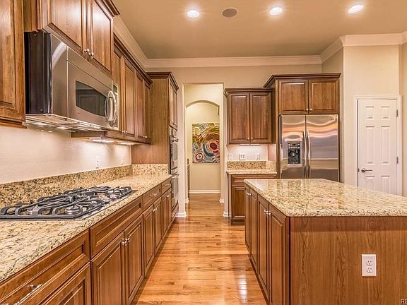Popular Aspen Model with walk-out basement & custom finishes throughout! This gorgeous home is on a premium lot backing to a greenbelt creating privacy & no neighbors directly behind. Impressive walk-out basement with rec room, stone surround floor to ceiling fireplace, custom wet bar, professionally designed theatre w/high end equipment included & temp controlled thermostat in the outstanding wine cellar with built-ins! The gourmet kitchen is sure to please with stainless steel Whirlpool appliances, beautifully crafted Maple cabinets, granite counters & breakfast area. Enjoy the great room with arched entry, built-in entertainment & gas fireplace. Relax on the covered deck with mountain views & overlooking the greenbelt. You will also love the 3-car garage with low maintenance epoxy floors! Short walk to the Aspen Lodge, 32,000 sq. ft. clubhouse & steps away from 48 miles of trails! State-of-the-art fitness center, pool, tennis courts & more. 20 minutes to both Boulder and Denver!