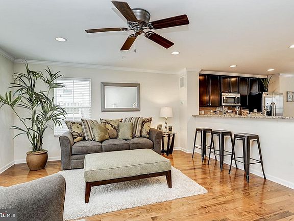 This beautiful townhouse offers sophistication and comfort with crown molding, chair railing, gas fireplace, recessed lighting, and gorgeous hardwood floors. Kitchen boasts 42~ cabinetry with modern backsplash, center island, breakfast bar, pendant lighting, stainless steel appliances, and granite counters. Master suite entices with plush carpet, double vanity, and ceramic tile shower. Upper level family room with sliding glass door to sizable deck that overlooks landscaped grounds and views of the city.