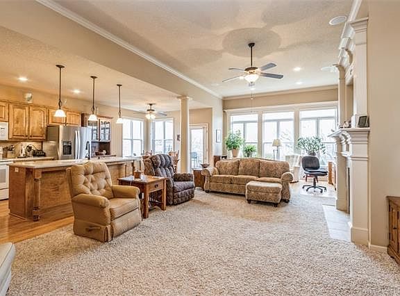 - Features: Carpet, Ceiling Fan(s), Fireplace