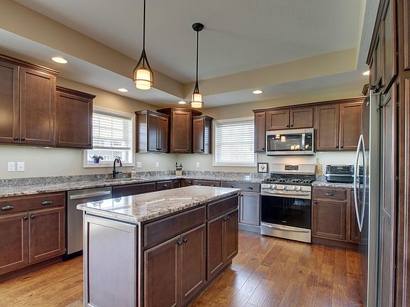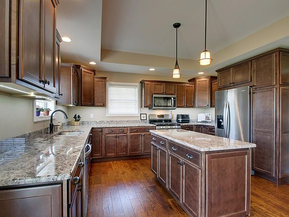 You won't find a more clean and well taken-care-of home ever! This 3 bedroom, 2.5 bathroom home with an open floor plan is located in a very desirable subdivision with easy access to shopping and the Interstate. Beautiful throughout and features gorgeous cabinetry, granite counters, and LED under cabinet lighting. High end and handsome window treatments throughout with the help of an interior designer. Well built 2X6 construction. Daylight basement with a rough in for a full bathroom. Extra large garage that is insulated/drywalled. Professionally landscaped. Owners had natural gas ran to the home and added gas log lighter fireplace, gas stove, and a heat pump with gas backup with a whole house humidifier. Also added laundry cabinets. Entertainment center in living room can stay. Work bench and metal racks in garage stay. Dining room table with 8 chairs and a hutch are negotiable. Don't miss out on this immaculate and beautiful home!