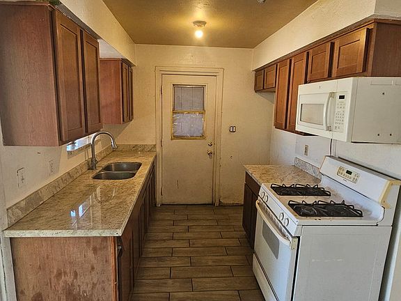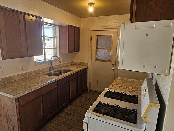 This 3-bedroom, 2-bathroom property features convenient carport parking with additional storage space and extended driveway. The interior offers wood-look flooring and the kitchen includes granite countertops and all necessary built-in appliances. The primary suite offers the convenience of an en-suite bathroom. The expansive backyard has a covered patio, rear alley access, and plenty of room to create your perfect yard. This property has solid bones with room for your improvements. Seller Financing available.