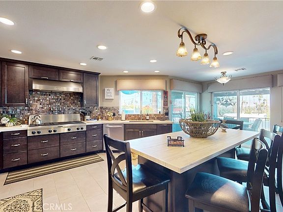 From the kitchen, gaze out over the breathtaking panoramic mountain views that define the desert landscape. The open floor plan seamlessly integrates the living spaces, creating an ideal setting for relaxation and entertainment. A tastefully designed 9-foot bar invites you to unwind and savor the million-dollar views while enjoying your favorite beverage.