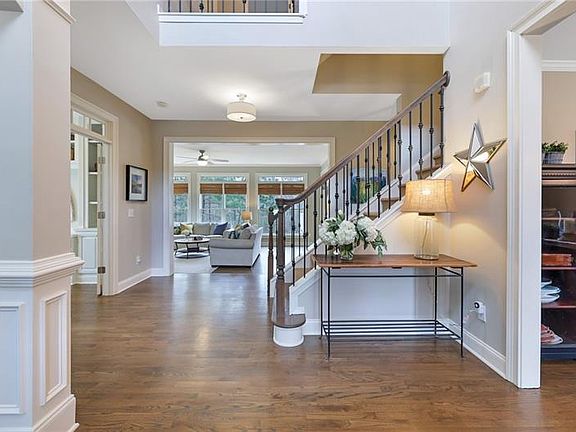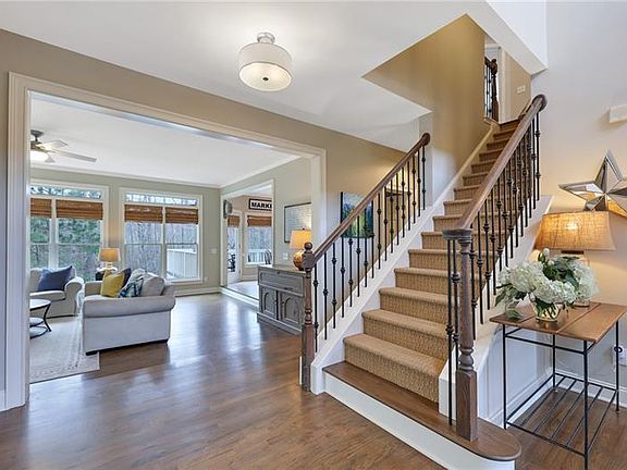 Get ready to be wowed by this beautiful home! Situated in a cul de sac, you won't have many cars driving past your home. You're going to love coffee on the deck in the morning and your favorite beverage on the front porch in the afternoon. Huge front porch has so many opportunities for outdoor living. Inside you'll find beautiful hardwoods throughout main living areas. Living room on left, dining room on right of foyer. There's a large office on left before you get to over-sized family room. Fireplace and built-in cabinetry are focus in family room, and you'll love the windows overlooking the deck and the backyard. Back deck is easily accessed from breakfast area. Kitchen has a breakfast bar. Laundry room on main level off kitchen. Butler's pantry located between kitchen and dining room. Huge owners' suite/retreat is going to wow you. Bathroom was completely redone a year ago. There's three more bedrooms and 2 baths. There's an additional large suite one more flight up! Great in-law/guest suite! On terrace level, you're going to again be wowed by the space and the finishes. Theater/family room, large bar area for entertaining, with beautiful marble counters, a game room, full bath and a room that could be used as a bunk room for company or play room. The space in this home is incredible. Great stone patio accessed from terrace level has a fire pit area. Mostly level lot that backs up to trees. No one behind you.